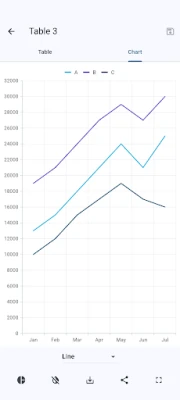 Su „Chart Maker" galite rinktis iš plataus diagramų tipų spektro, kad jūsų duomenys būtų pristatyti kuo efektyviau. Mūsų asortimente rasite klasikines apskritimines (pyrago) diagramas, horizontalias ir vertikalias stulpelines diagramas, linijines diagramas, sudėtines stulpelines diagramas, polines diagramas, radaro diagramas ir modernias žiedines diagramas. Ši įvairovė leidžia pasirinkti tobulą vizualizaciją kiekvienam duomenų rinkiniui, padedant jums išreikšti savo informaciją aiškiai ir paveikiai. Sukurkite neįtikėtinai gražias ir informatyvias diagramas su „Chart Maker" ir leiskite jūsų duomenims kalbėti patiems.