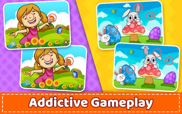 „Find the Difference game for kids" – tai įdomus skirtumų radimo žaidimas visai šeimai. Mėgaukitės spalvingais HD paveikslėliais ir lavinkite pastabumo įgūdžius. Ši klasikinė pramoga tinka vaikams ir suaugusiems, mergaitėms ir berniukams, vyrams ir moterims. Atraskite visus paslėptus skirtumus!