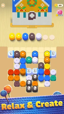 Nors „Thread Jam" iš pirmo žvilgsnio gali pasirodyti paprastas, neapsigaukite – tai intelektuali pramoga. Kiekvienas lygis – tai vis sudėtingesnis iššūkis, reikalaujantis kruopščiai apgalvoti kiekvieno siūlo kamuolio vietą ir eiliškumą, kad būtų baigtas subtilus siuvinėjimo raštas ir išvalyta lenta. Tai puiki protinė mankšta, lavinanti loginį mąstymą ir problemų sprendimo įgūdžius. Skirtingai nuo įprastų spalvinimo žaidimų, šiame kūrinyje jūsų darbai atgimsta kaip 3D siuviniai, suteikiantys jūsų meno kūriniams unikalumo ir gyvybės. Derinkite spalvas, užpildykite paveikslėlius ir leiskite savo vaizduotei skleistis, kuriant nepakartojamus šedevrus.